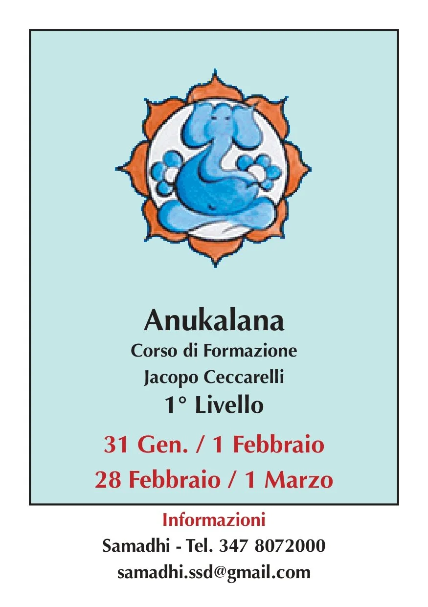 Informazioni e Iscrizioni Cell. 338 160 0523 www.jacopoceccarelli.it www.anukalanayoga.com